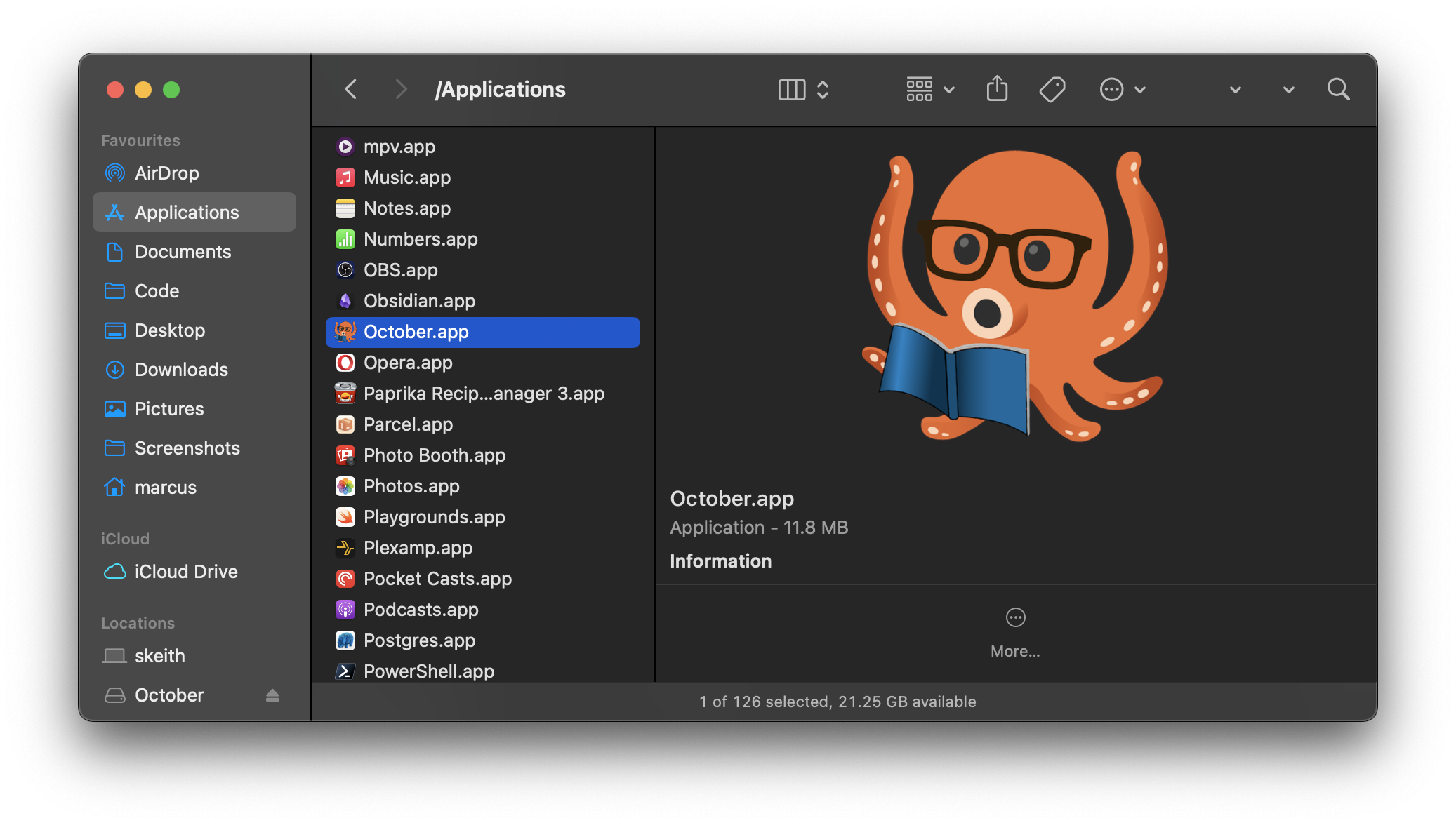 That's it! You can either double click on the entry in Applications or search for October using your search tool of choice (ie; Spotlight, Alfred, Raycast etc)