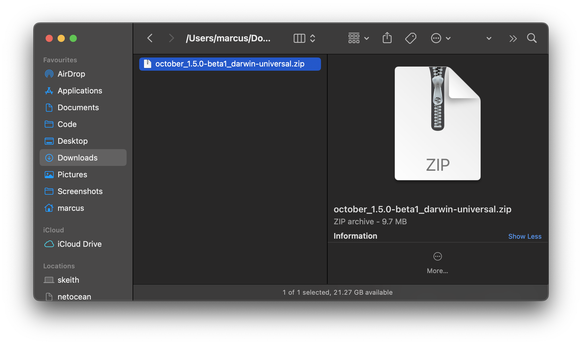 Once downloaded, you should have a zip folder in ~/Downloads like so: