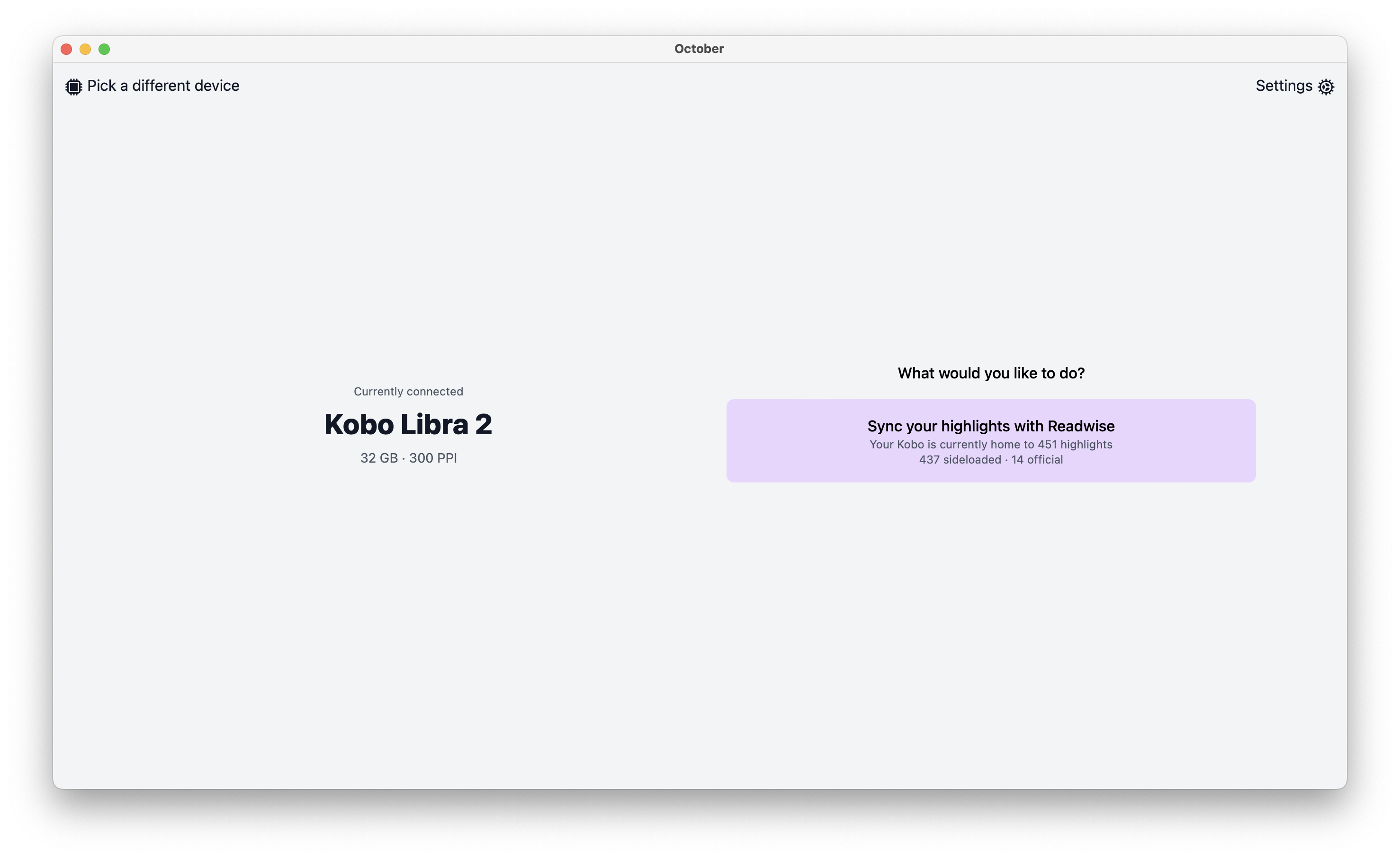 October's internal settings are stored in a JSON file that lives at $HOME/Library/Application Support/october/config.json.