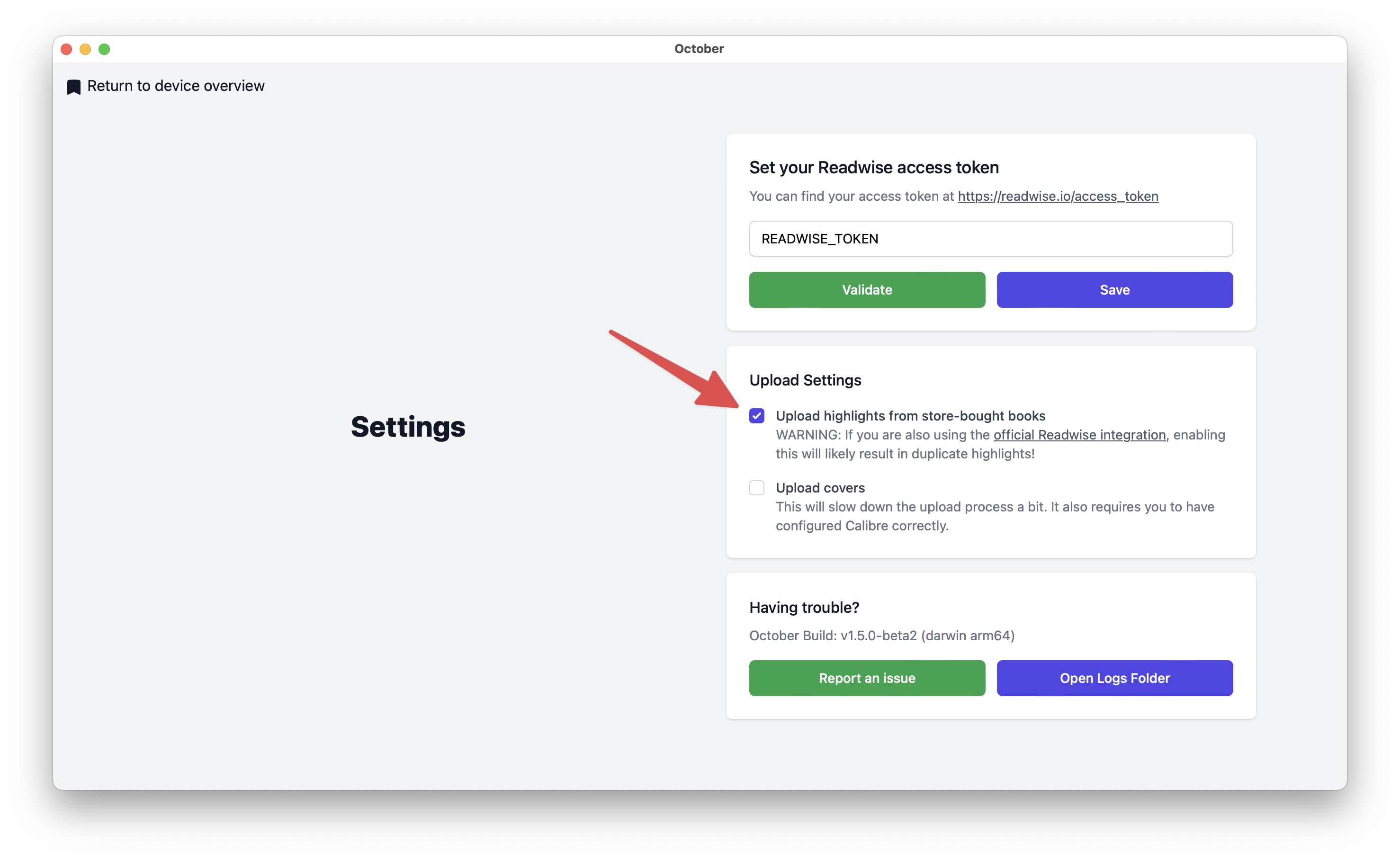 A few users have reported having issues with the official integration from time to time so if you'd like to enable uploading store-purchased highlights via October, you can do so via Settings.